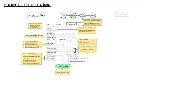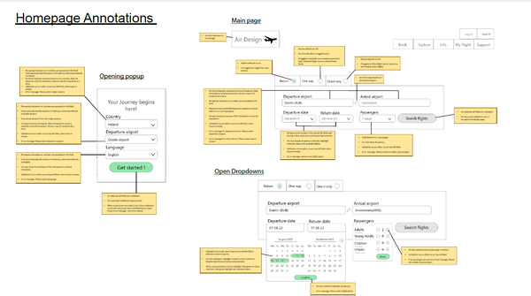 With this stage of the process complete I made detailed annotations for the site, laying out the rules and conditions of each of the fillable or interactable sections of the site.