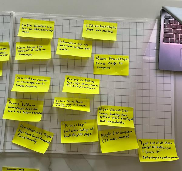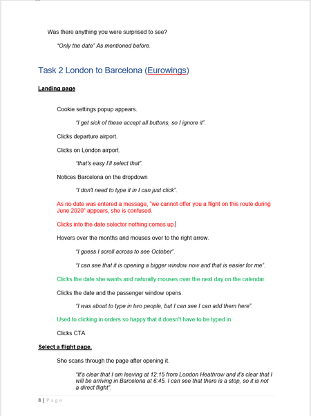 After this I conducted two usability tests in addition to the ones provided by the UX design institute. These tests were focused on tasks that take the user from the beginning to the end of the booking process. I recorded each of the tests and took notes about their comments and experiences.
